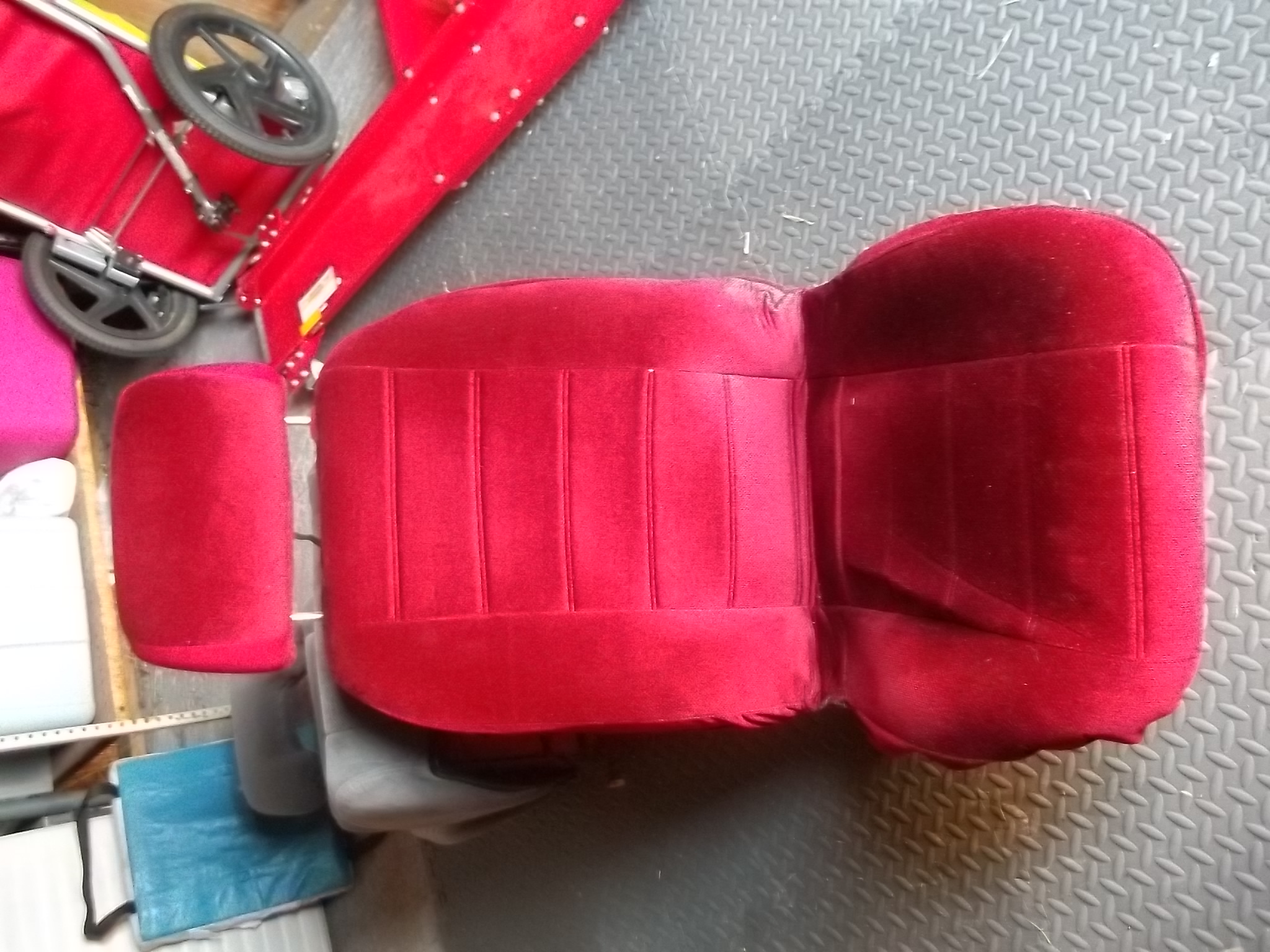 ****original burgundy seats...front and back. the front have seat covers and decent foam. the back bottom is in really good shape. the upper is ok except for across the top