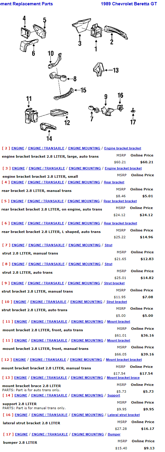 1989 CHEVROLET BERETTA 2.8L Manual Transmission Mount