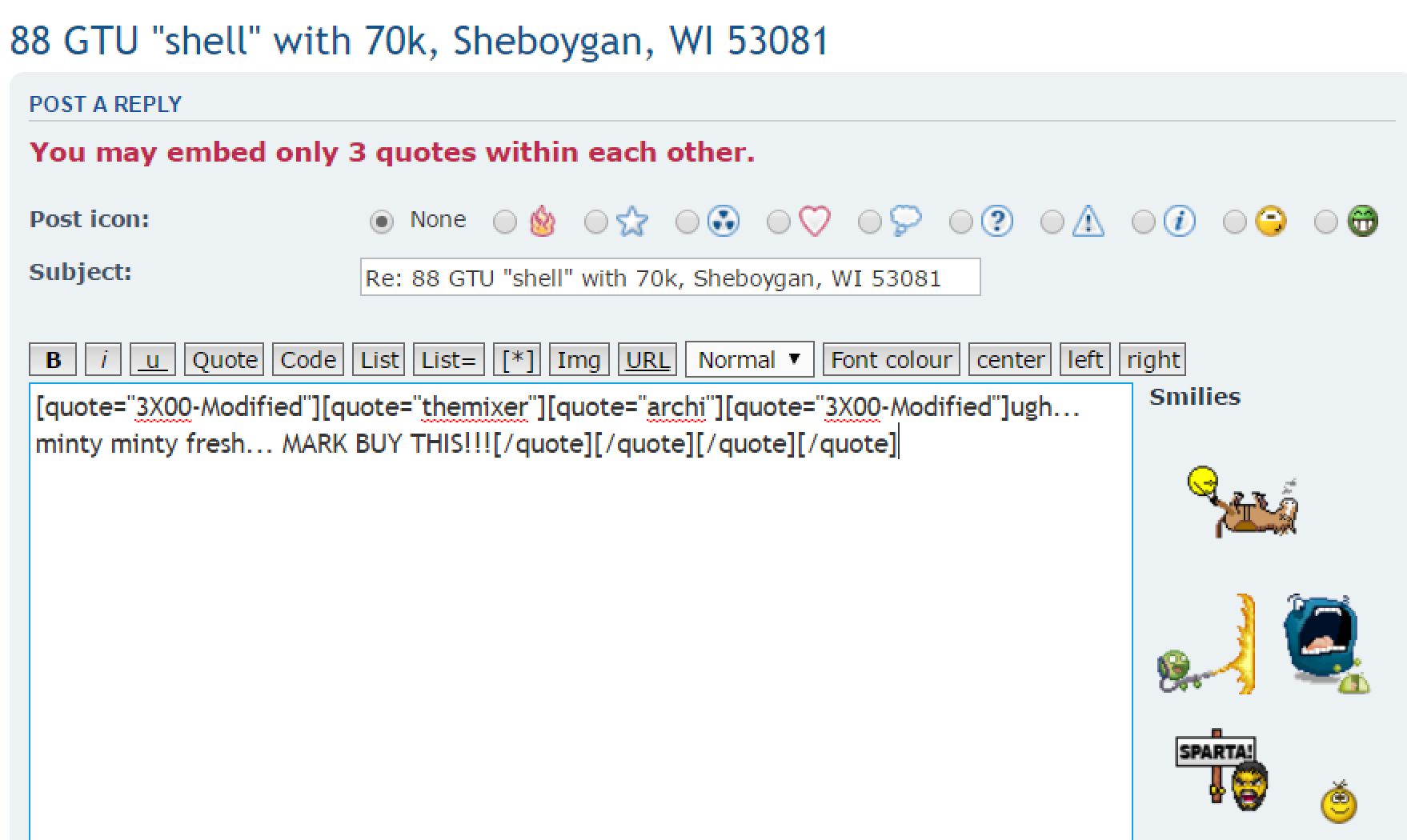 Re: 88 GTU "shell" with 70k, Sheboygan, WI 53081