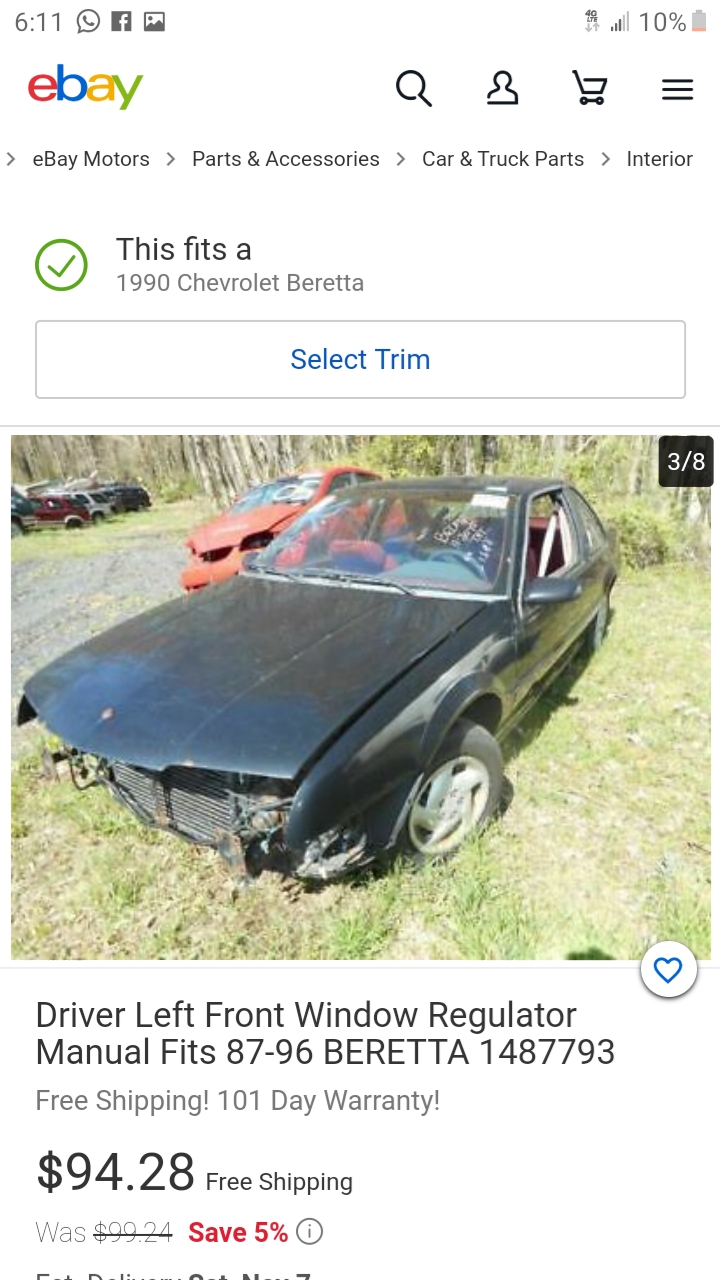 There is a beretta on ebay. Guy is selling left window regulator. Posted a few pictures. Looks likenit has some good parts left on it. Located in Maryland.