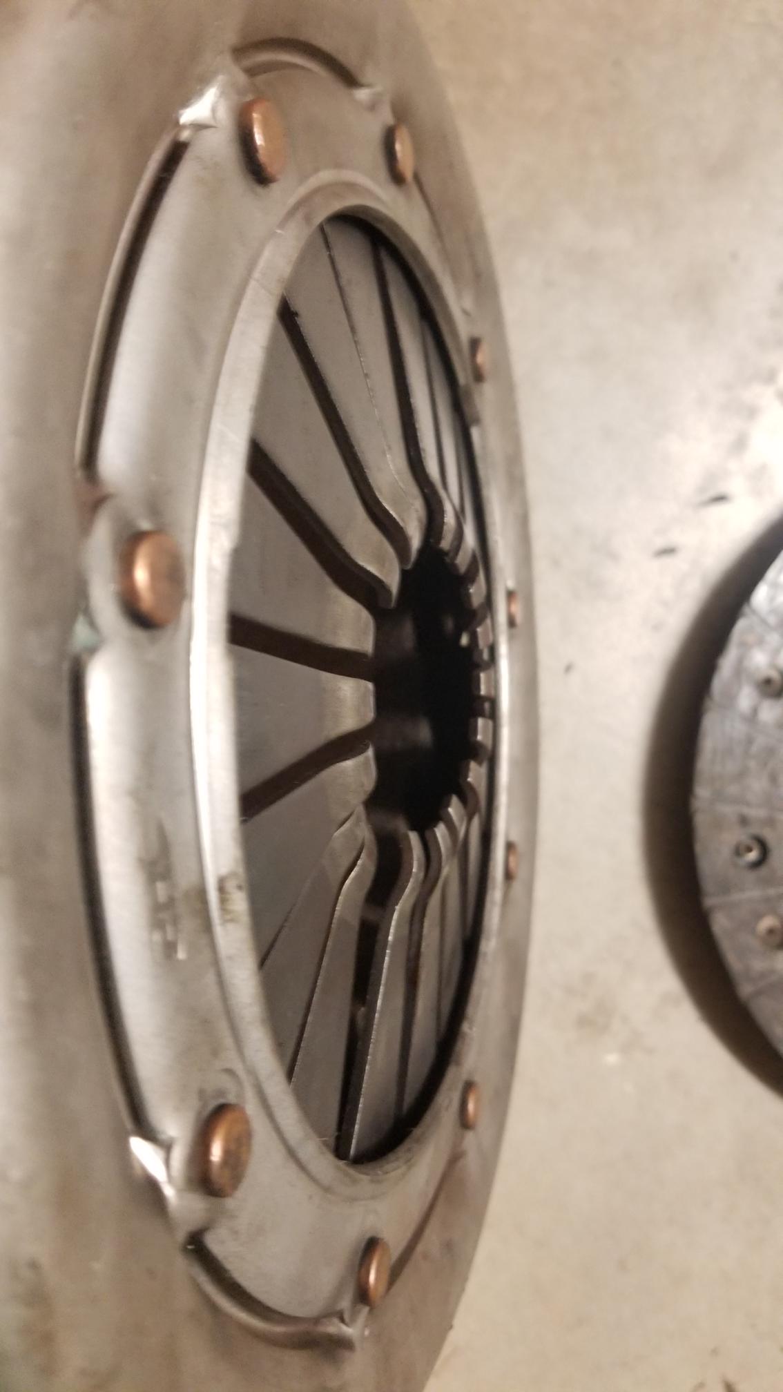 The clutch itself was a very basic, Chinese made Valeo/Perfection unit from Advance Auto. I bought it in 2013 when I first put the car together. I was spending so much money at the time just to get the car on the road that I opted to go with a lower quality unit, knowing I wasn't going to be attempting to put down any real HP numbers... Apparently that clutch wasn't up to the task of spinning that fast. When the friction material came off, the pressure plate fingers sunk in on one side which then caused the release bearing to sit crooked and create a leak in the slave cylinder. So... looks like I'm in the market for a better clutch. I'll also be putting in a new clutch master and slave cylinders as well as a stainless braided hydraulic line to get rid of the oem plastic one.