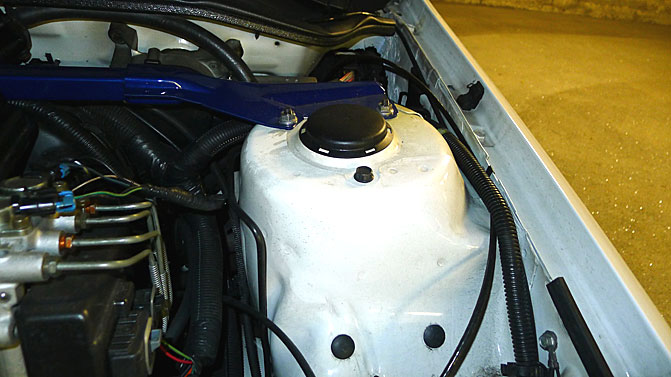 My wiring harness rubbed the paint of my strut tower bar. I'm going to have to find a way to tie it back a little. I think blue was a good choice, by the way.