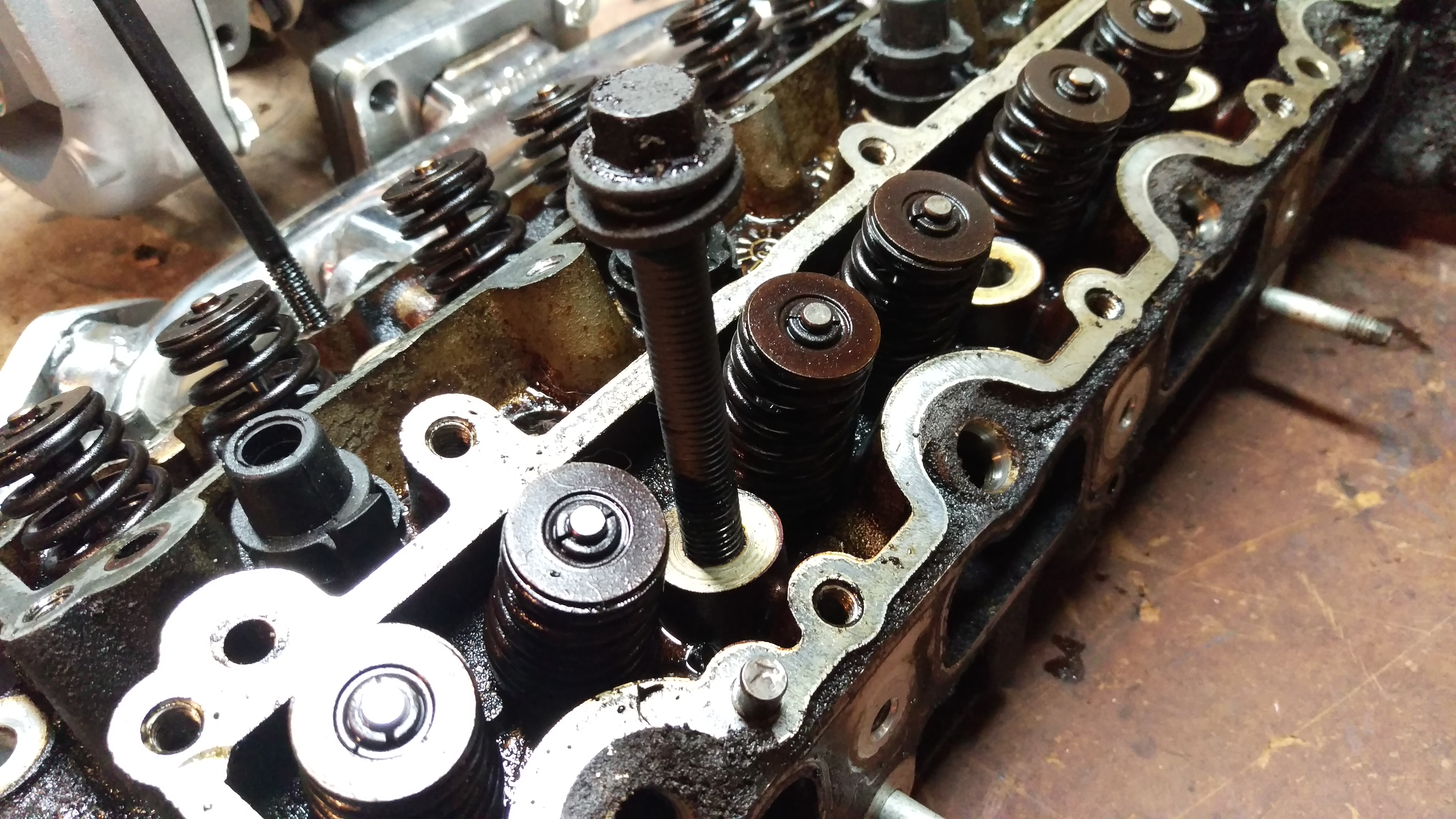 Tore the motor down tonight. Goods and bads. Timing housing was broken at the bottom. Most the water jackets were clogged. But everything else in great shape. Test fit the 2.4 head. Looks like only major difference other than chamber size and valves is the slot for the head bolts. 2.3 bolts barely dont fit.