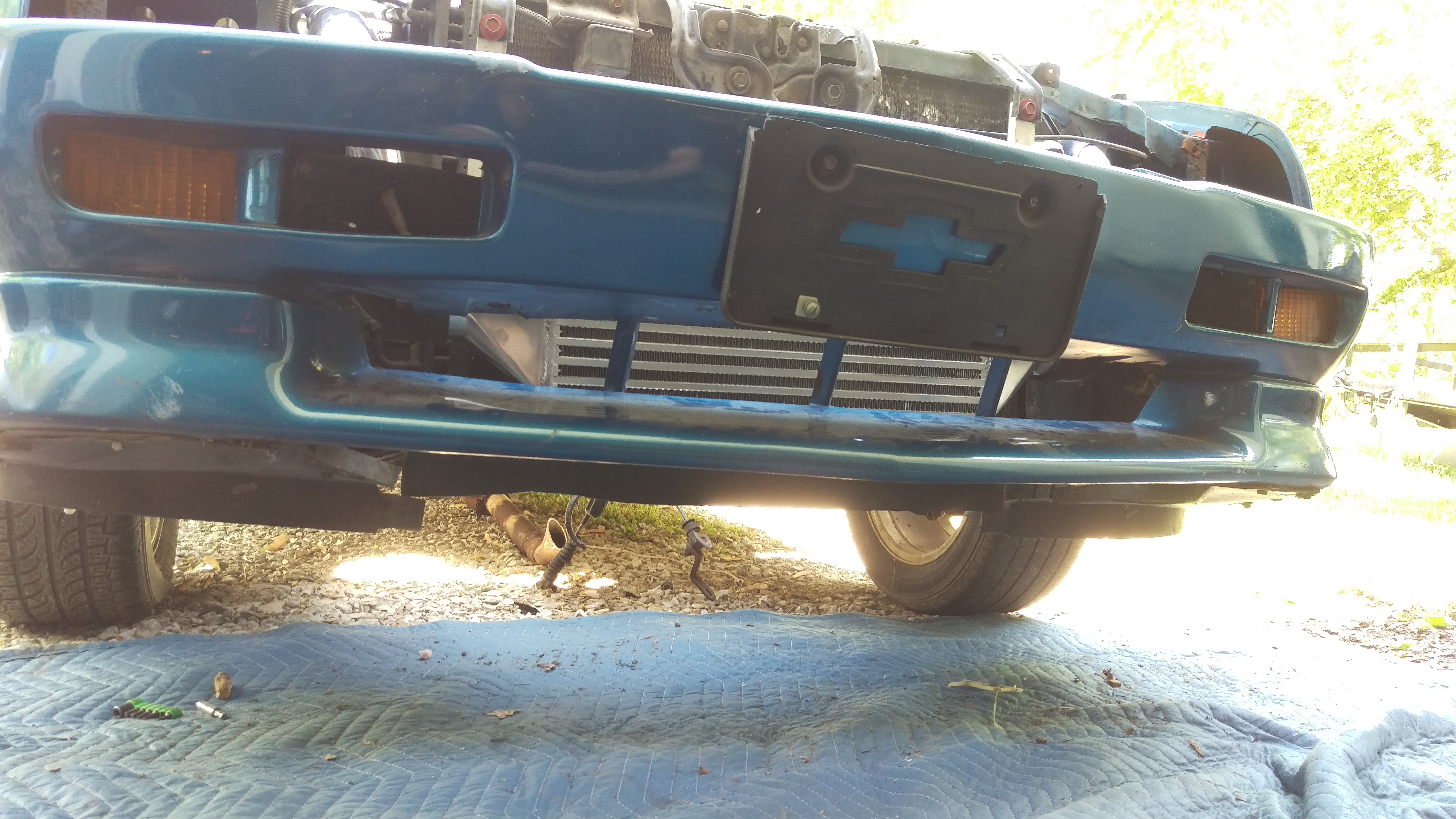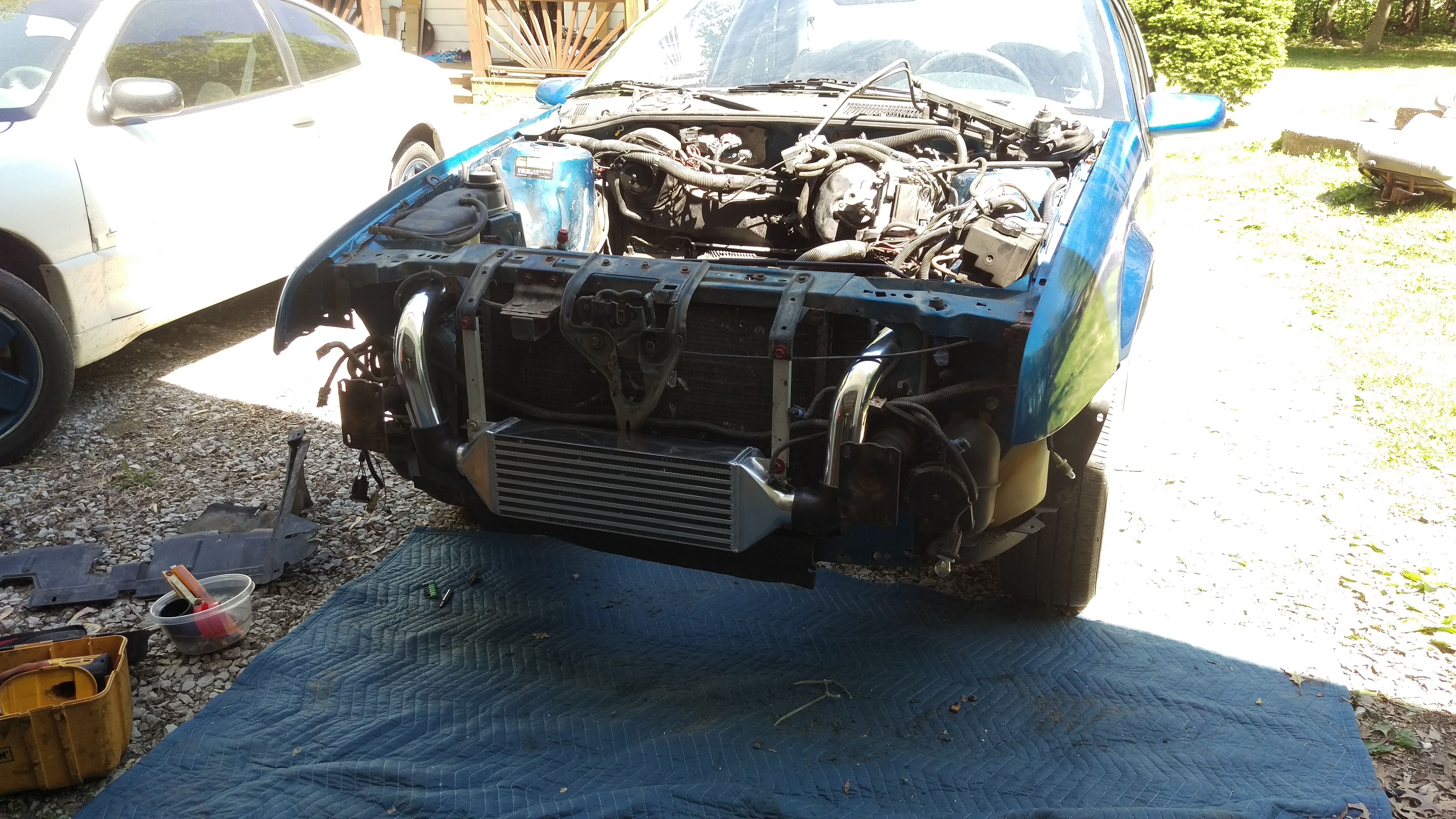 Ugh, the floor is worse than I expected. But the intercooler fits lol. Priorities.