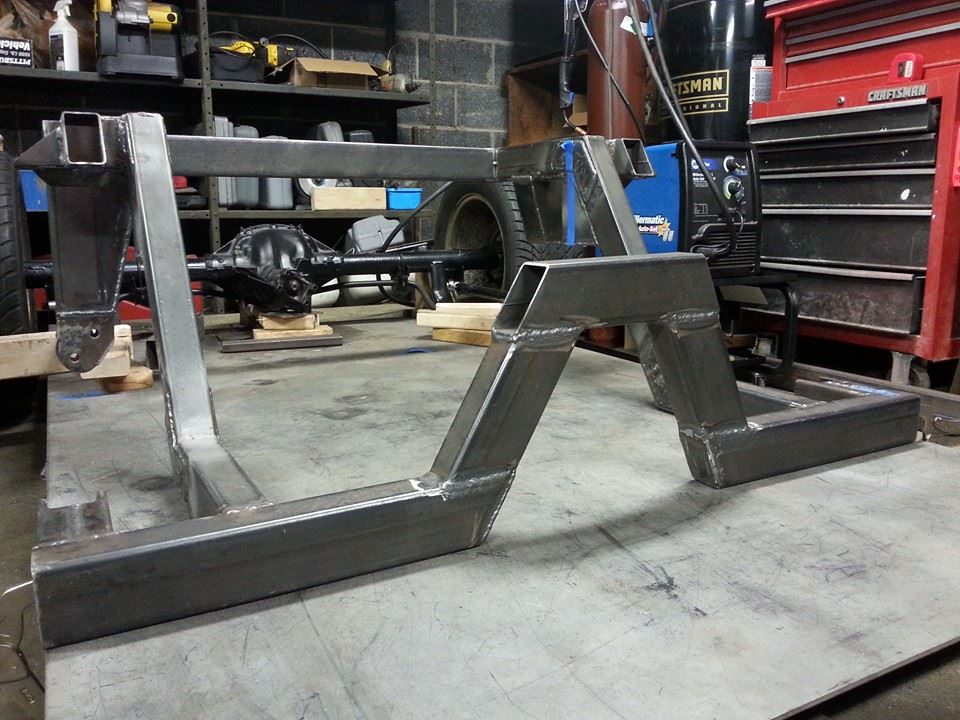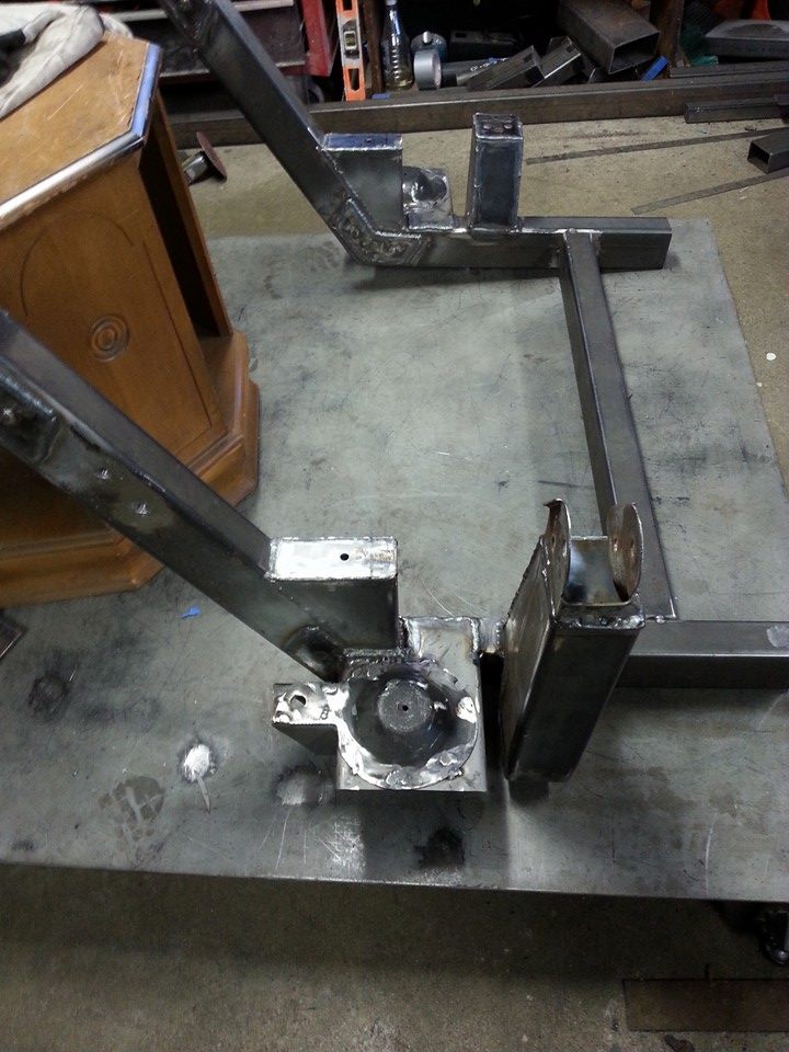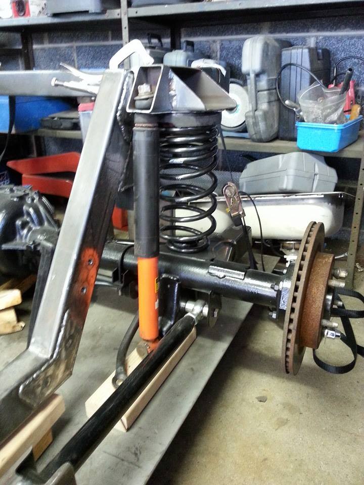 Welded all upper suspension mounts on the the rear sub frame. And final mocked up the springs and shocks..