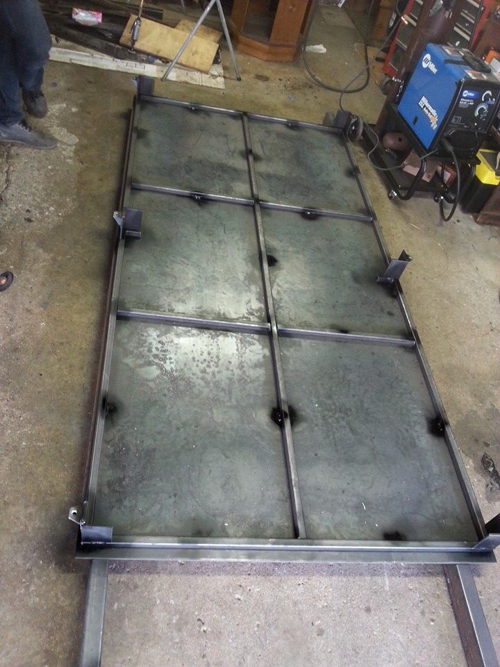made a 4' by 8' welding table/surface plate. and made templets of the stock uni body frame rail sections from the fire wall back.