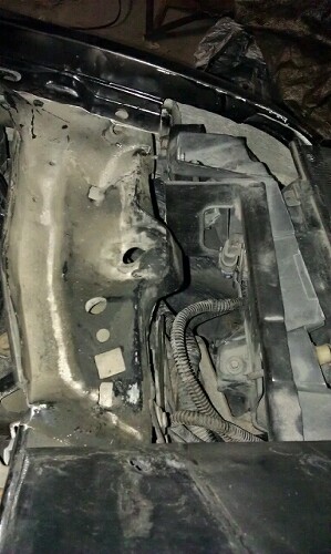 I used a come along and attached it to my rafters and pulled the support/doghouse out and had to replace header panel, headlight, hood, fender, and fan