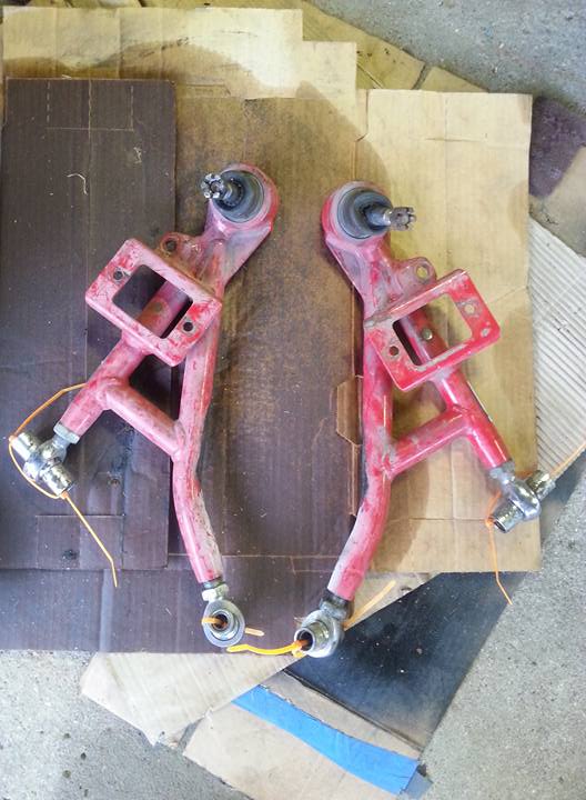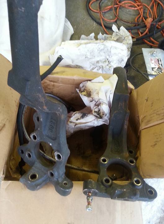 picked up some goodies!!!! Modified front spindles, power steering rack with extended tie rods, tubular lower control arms, hydro handbrake, and dual rear caliper set up..... this is the stuff thats gonna make the bere