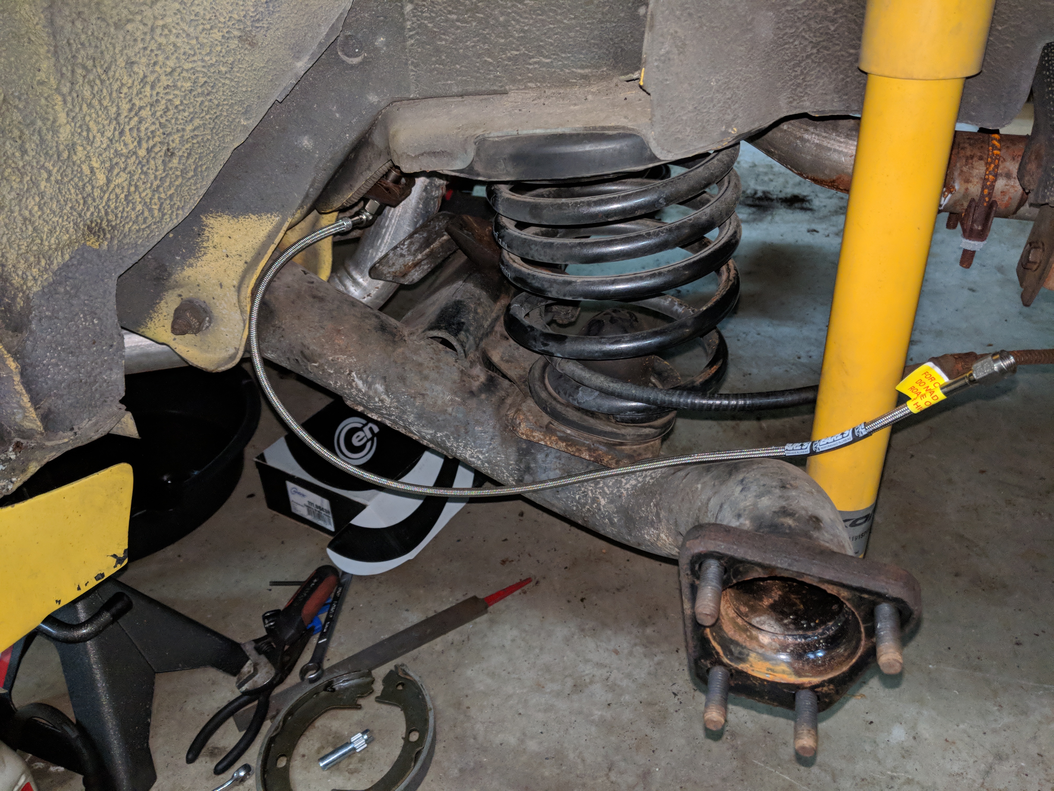 So it looks like it'll now be axle swap, disc swap, spring perch repair, and patching the fuel and brake lines in the rear.