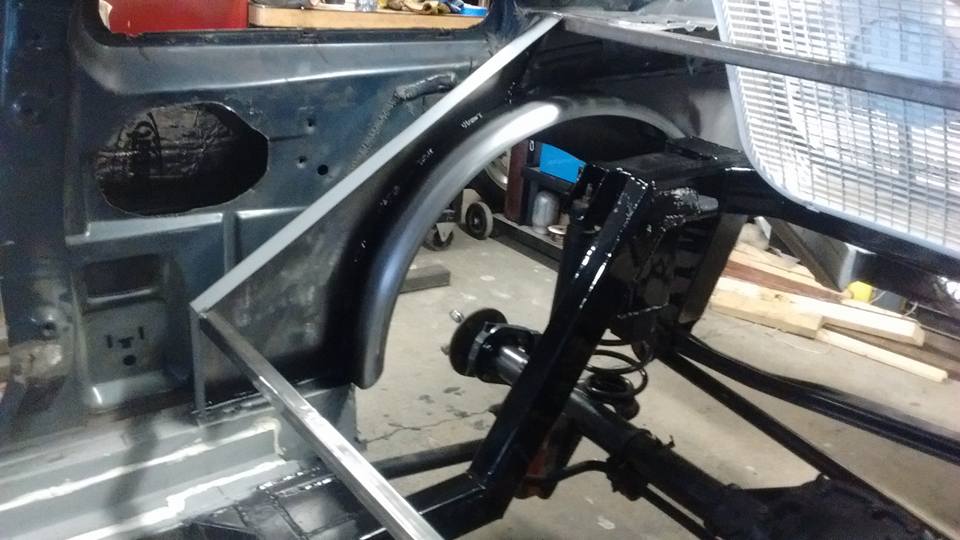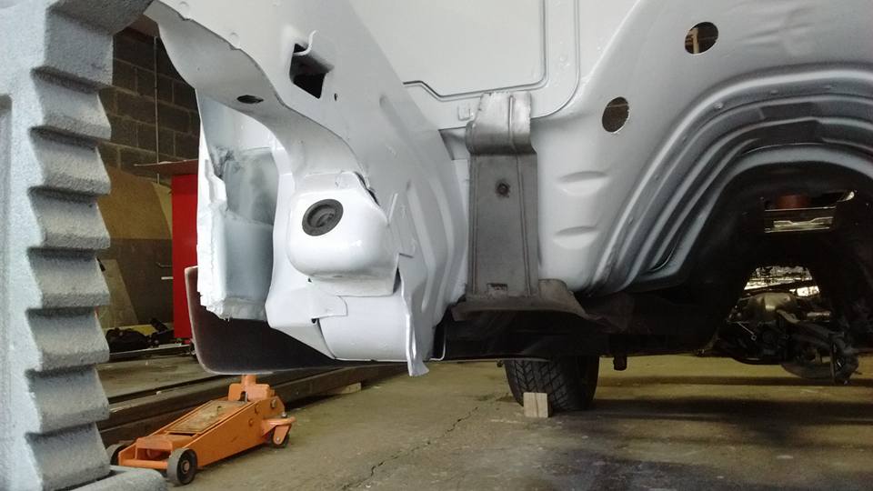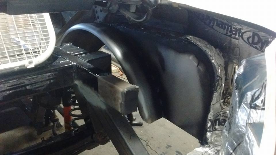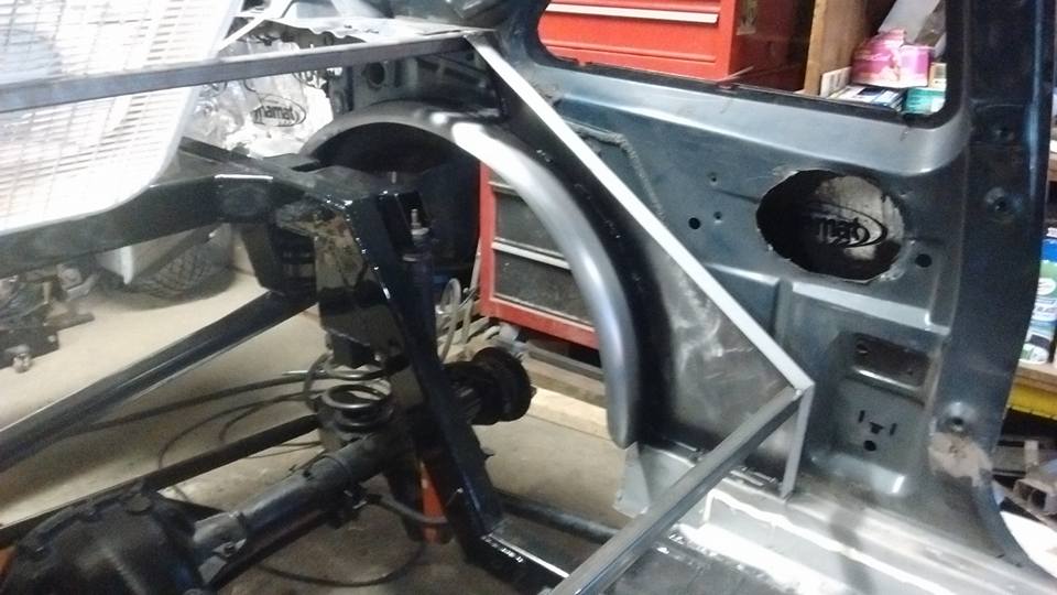 Welded in the rear wheel tubs and side panels for the rear firewall/close out
