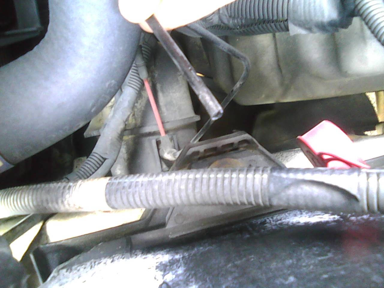 broken brittle hose on a canister below the battery?