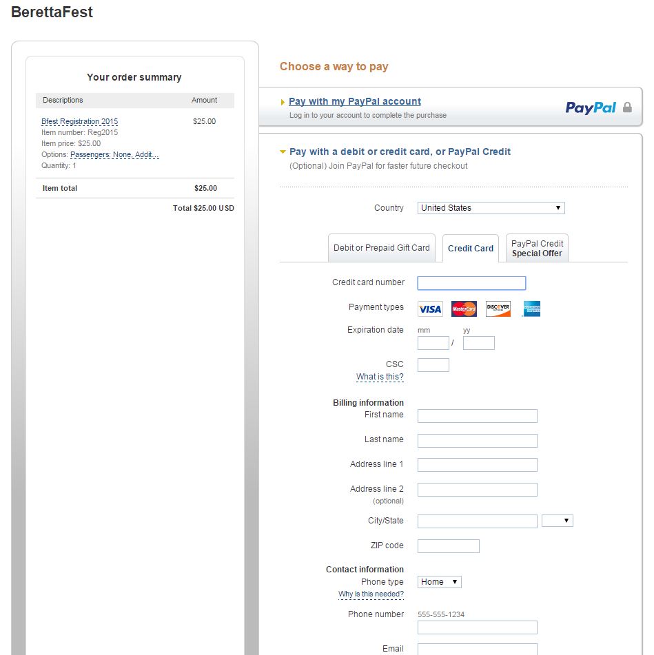 Pay with PayPal Account option after click on checkout. Just below you can click Pay with Debit/Credt Card or Paypal Credit. YOU DON'T NEED AN ACCOUNT I will close this topic with saying, if you screw up registering with all the information available on these sites I will smack you in person at the event