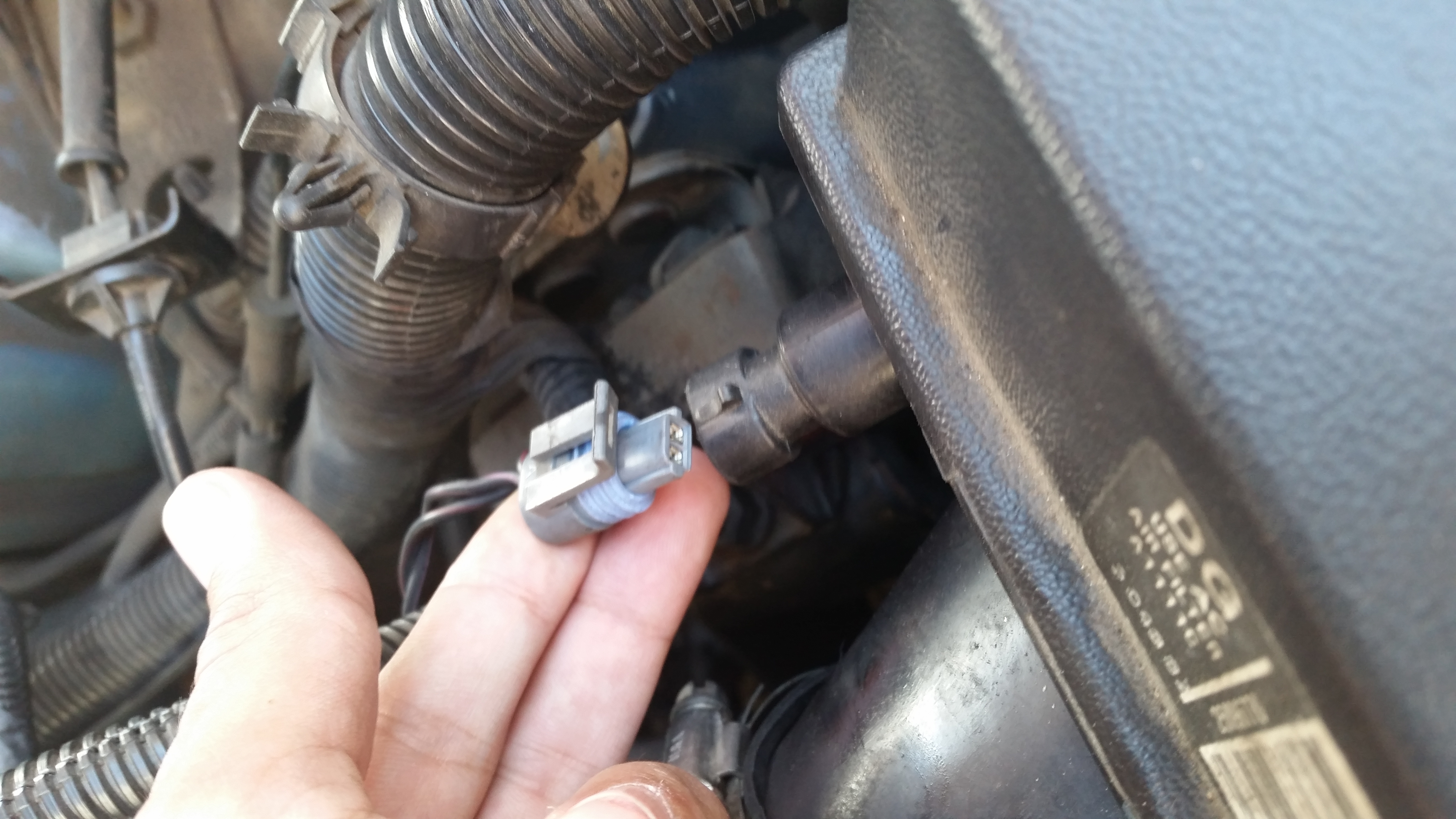 The MAF is located between the air filter housing and the throttle body.