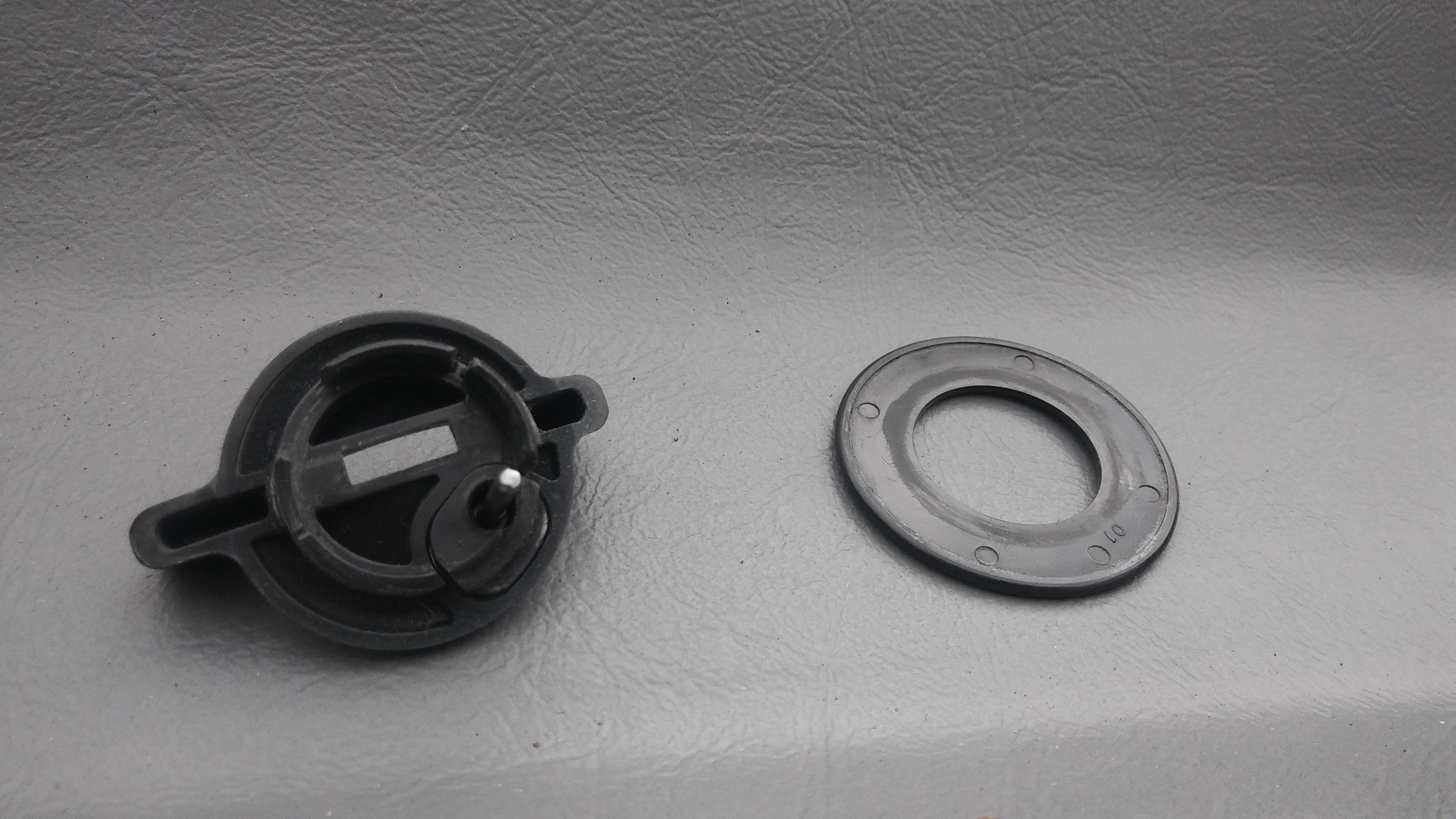 This flat round piece of plastic. It fits super tight and it was right on the edge of the tabs that held the wing nut part of the ignition on the cylinder.
