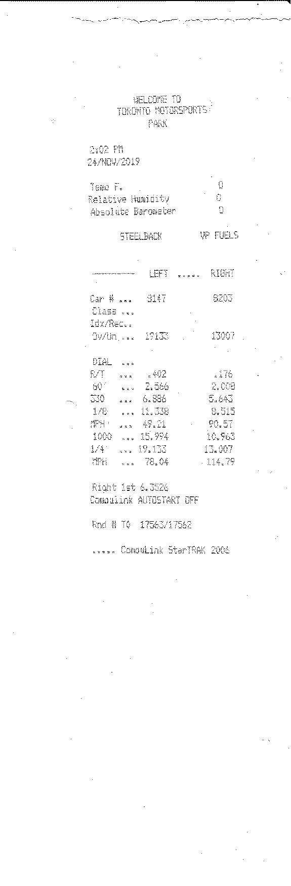 Also had a pass at 12.54 @ 121 MPH, but that slip seems to have dissappeared.