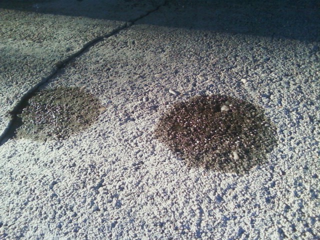 i noticed 2 small stains on my driveway and found fluid collecting on the metal rail that the plastic lip is connected to under the front bumper. i can take a pic if you need to see it.