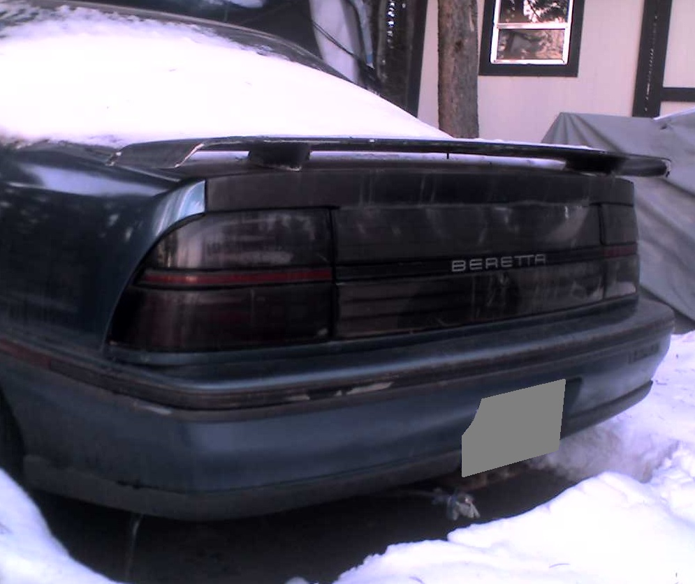 The Z28 spoiler should be way too long. I had an 83 Z28 and I know that car was wider than a Beretta.