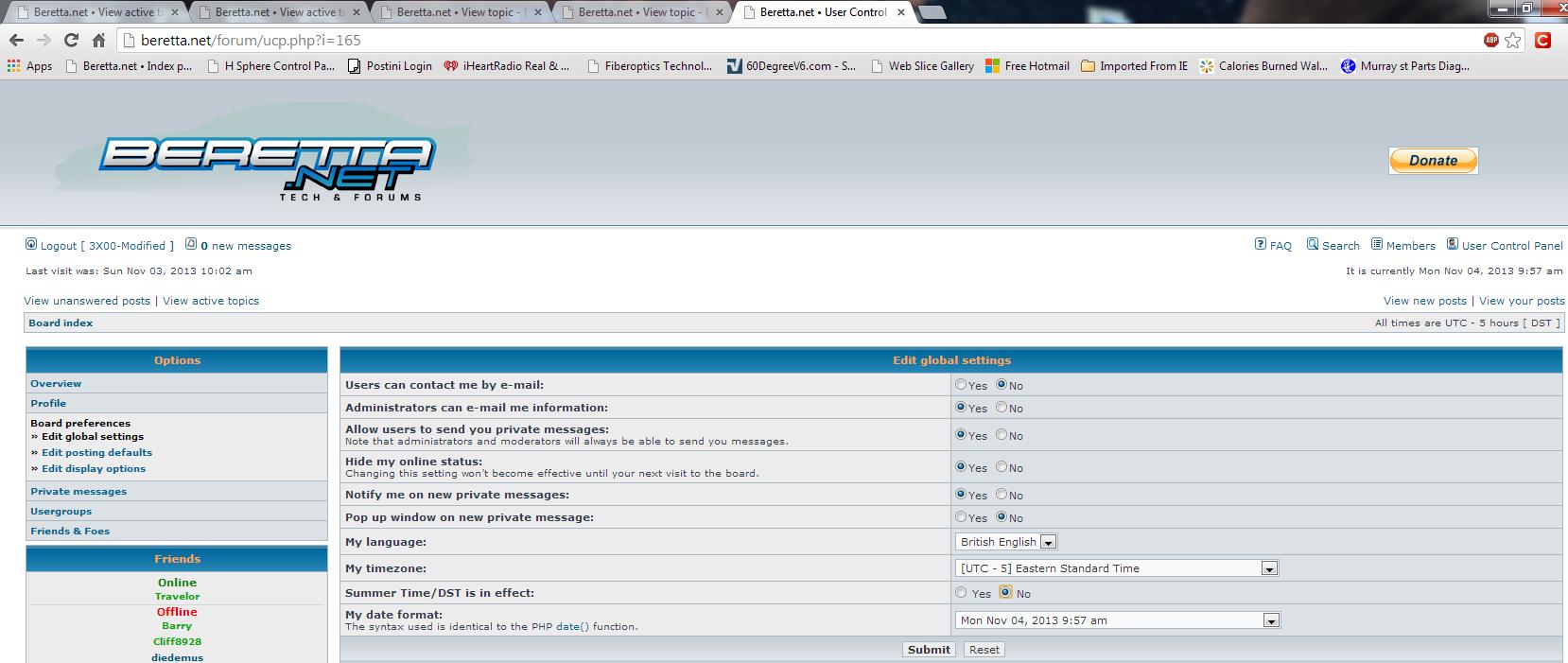 There is a radial button below time zone that says Summer time/DST is in effect, YES OR NO... and the time change was Sunday AM at 2, hence the reason why it was wrong yesterday.Asylum wrote:Well it was right til yesterday.