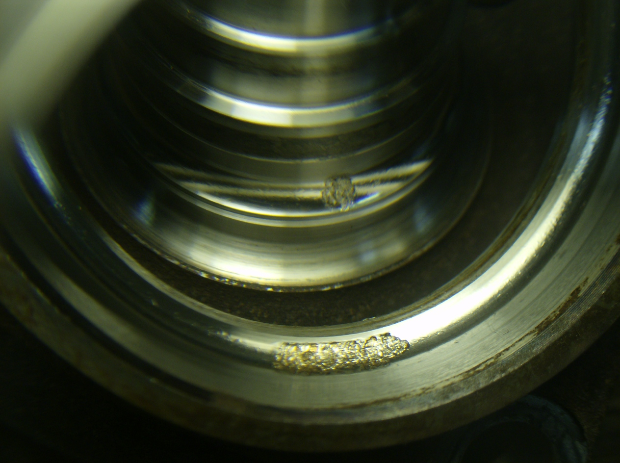over 150k on the originals. All has been well until my ABS started acting up. I inspected and found the brakes getting rusty on the inside of the rotors so I did a complete brake job, new everything. A couple weeks later, I notice a rumbling sound at certain speeds. It would start at 35 mph then fade and get stronger at 55 mph. It seemed to be coming more from the driver's side. So since the brakes were the last thing done, I thought it was something to do with that. We had driven on a road with fresh gravel and the rumbling started just after that. I read that the dust could foul up the pads and so I cleaned them and the rotors as well. It didn't help. I emailed the store where I bought the pads and asked if they had any other complaints. No was the answer but they were nice enough to give me new pads in exchange. The new pads didn't help. So I wondered about my new rotors. I swapped an old turned rotor for the newer one and it didn't help either. So I finally decided to try changing out the new hubs I put on two years and 12k miles ago. I first changed the drivers side and no more grumbling was heard. So I changed the other side as well as a precaution. The noise is gone but I still have trouble with the ABS which I will continue to sort out. But I wondered what the heck happened to the hubs so I knocked them apart. Here is a picture of the bearing race that has chunks missing. I have no idea what the heck caused this. They had plenty of grease left in them. The other one looked fine. I wonder could the gravel dust have gotten in and fouled them up or were they just cheap Chinese junk that won't last? Any ideas?