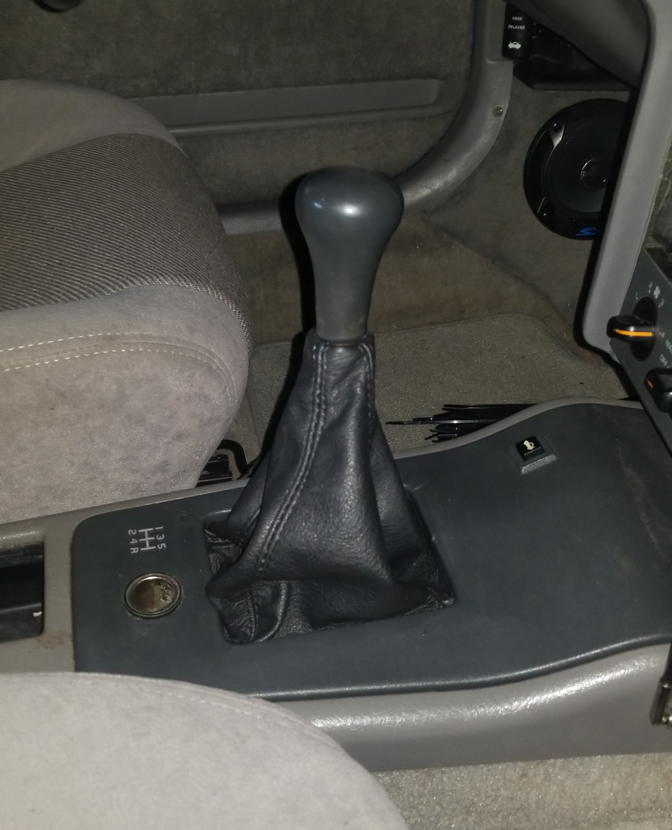I finally got around to installing a leather boot a few weeks back. I'm really happy with it (especially over the stock joke). I went with a 4thgen Fbody leather boot. I basically used the 4 screw holes on the bottom of the shift place to attach the boot to the underside and then used a special leather/vinyl eboxy to bond the edges to the underside. Came out really nice. I put this off for way too long because I kept thinking it was going to be a more involved experiment than it actually was.