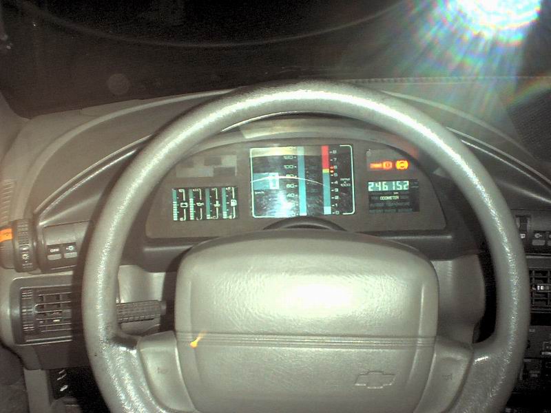 That is an OLD picture... IIRC, they did a newer dash swap. It has a Corsica cluster "hood". I remember them taking the cluster apart and removing the orange lenses from the inside. Who did it, I couldn't tell ya... it's around here someplace though.