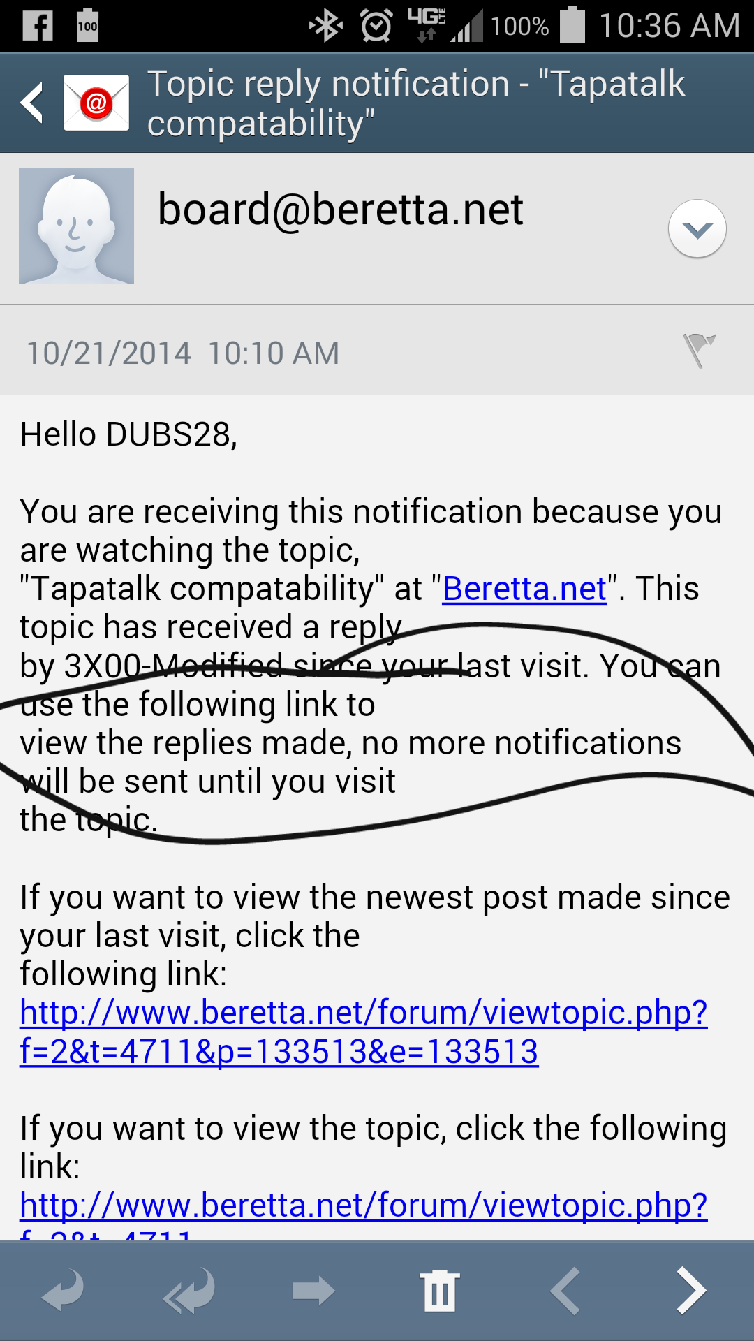This time I got both notifications. Thinking I'd I just delete the email without opening the link it will stop future emails and hopefully continue Tapatalk Notifications. On this topic anyway.