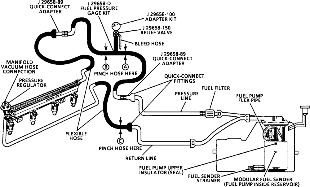 Depends on the quad fuel rail used too. Pauley's quad has a shrader valve right on the rail, Patrick's doesn't. Go figure.