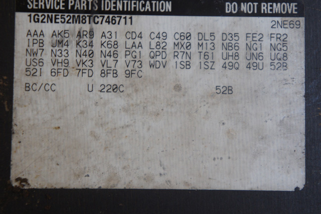 Lockerz wrote:Well, I found it but this is not my VIN. I don't even think this was part of a Beretta at any time since it starts 1G2 and if it were a Beretta it would start 1G1, unless I am mistaken. So, is there anywhere else it might be?
