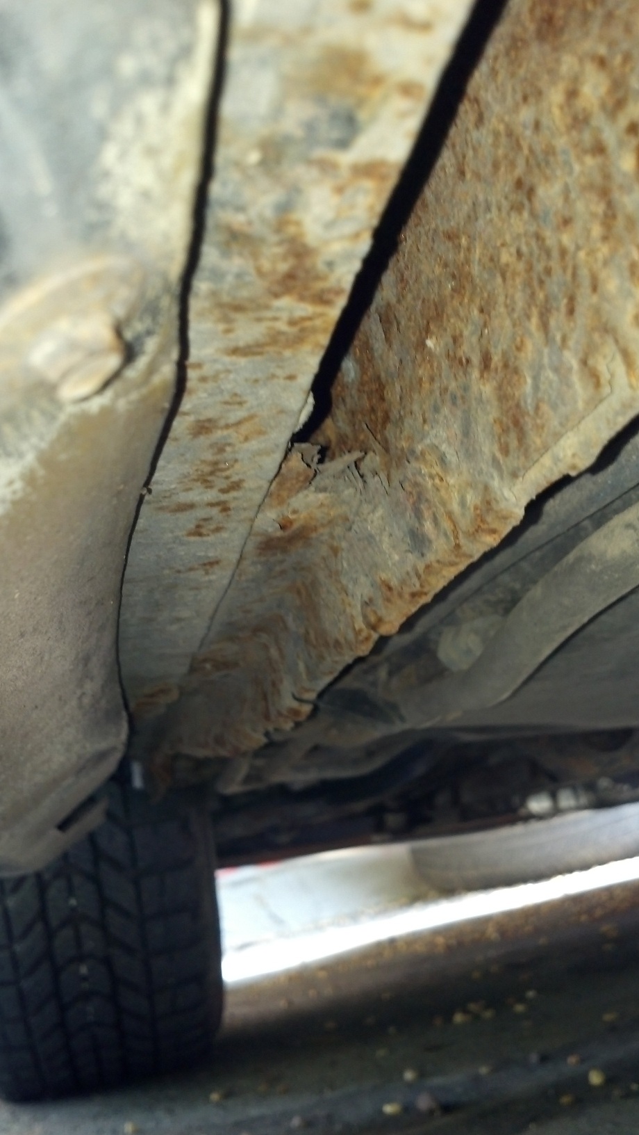 I don't know if I described it right, but its the inner(?) (under the car) rocker that is rusted away. The pics are all of the drivers side directly behind the sideskirts.