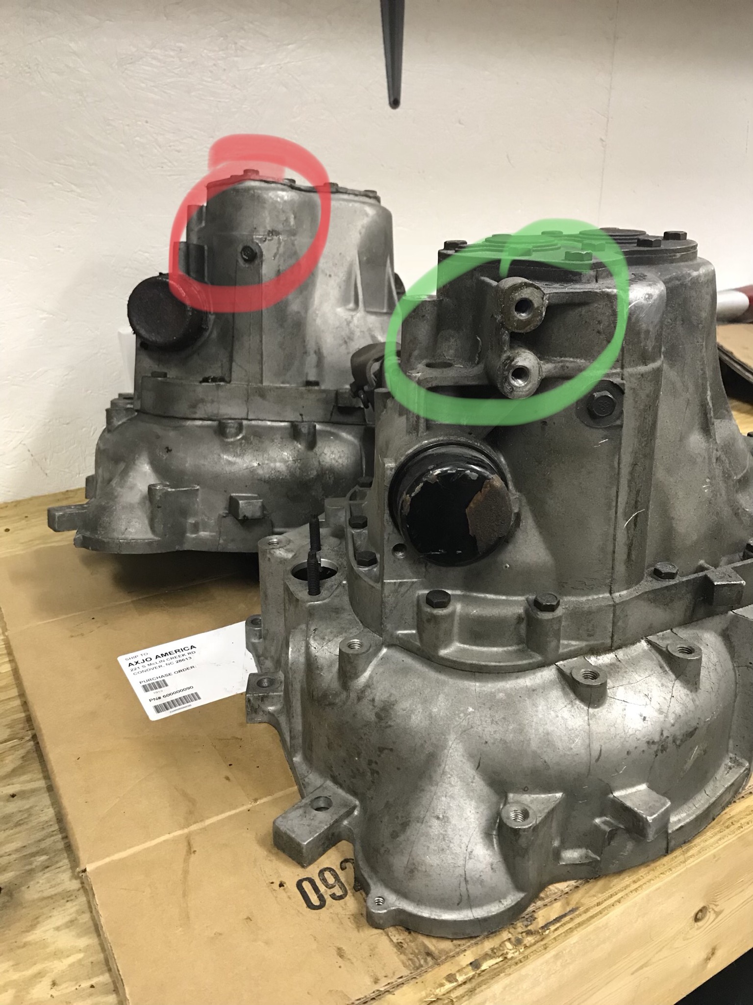 The trans is from a 94 Cavalier, which doesn’t have provisions for the front 5spd mount in the casting. The rear mount bosses are there, but only 1 of the 3 mounting bosses used are drilled/tapped.