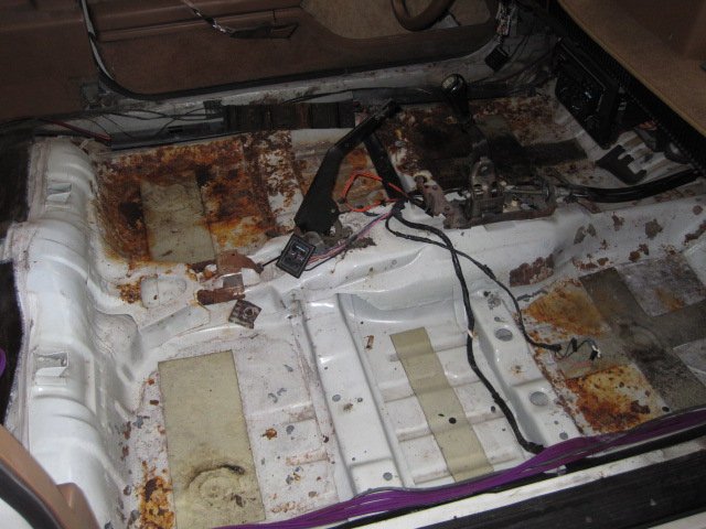 Pulled out the interior and it will be done next Tuesday. In the mean time, I pulled out the carpeting and found some rust on the floor. Been busy sanding it down, priming it, painting it and repainting the seat rails.