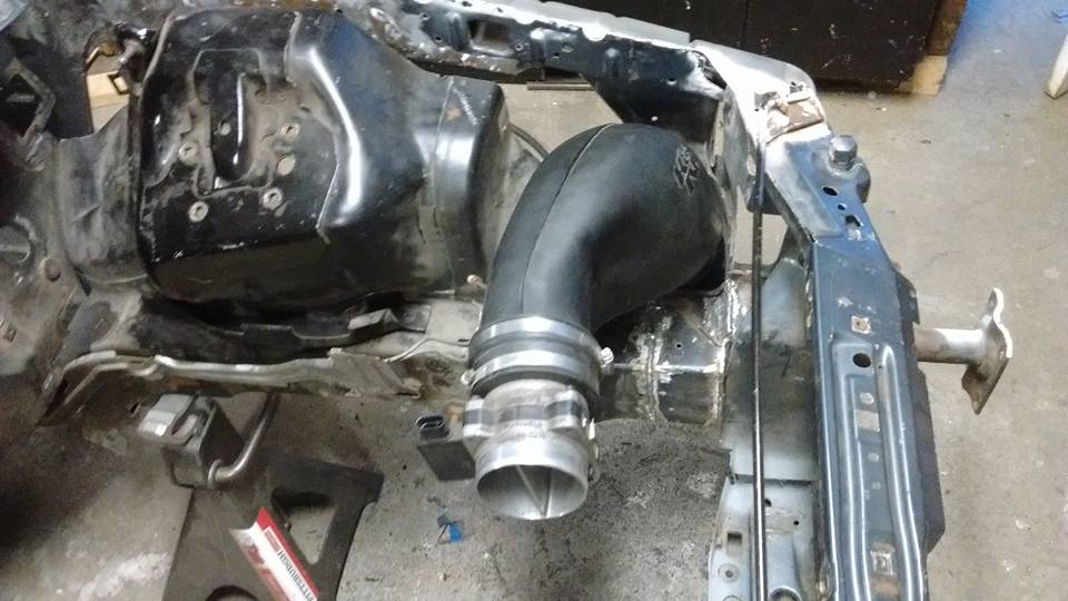 Front frame rails tied back in to the rad support and bumper rails. And was able to preserve the stock location for the coolent overflow / battery tray and KN air filter !!!!
