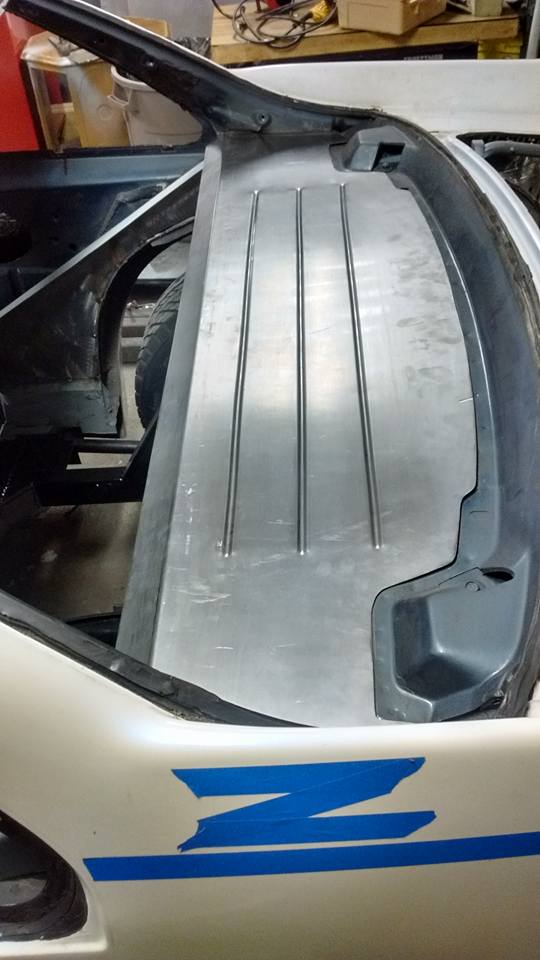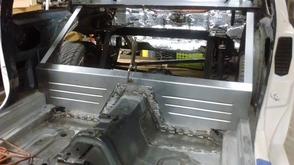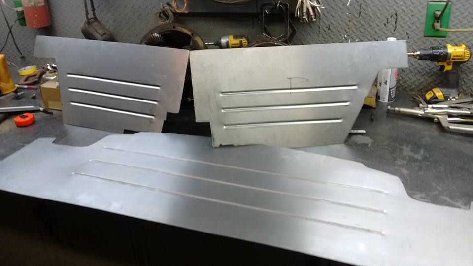 Beads rolled and flanges bent for the rear firewall