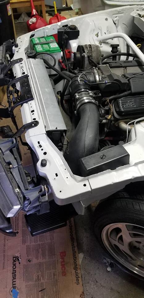 Had to ditch the factory coolant overflow due to tire clearance issues. Was able to retro fit the factory recovery hoses and tube and plumb it into this aftermarket tank and relocate it under the header in front of the core support