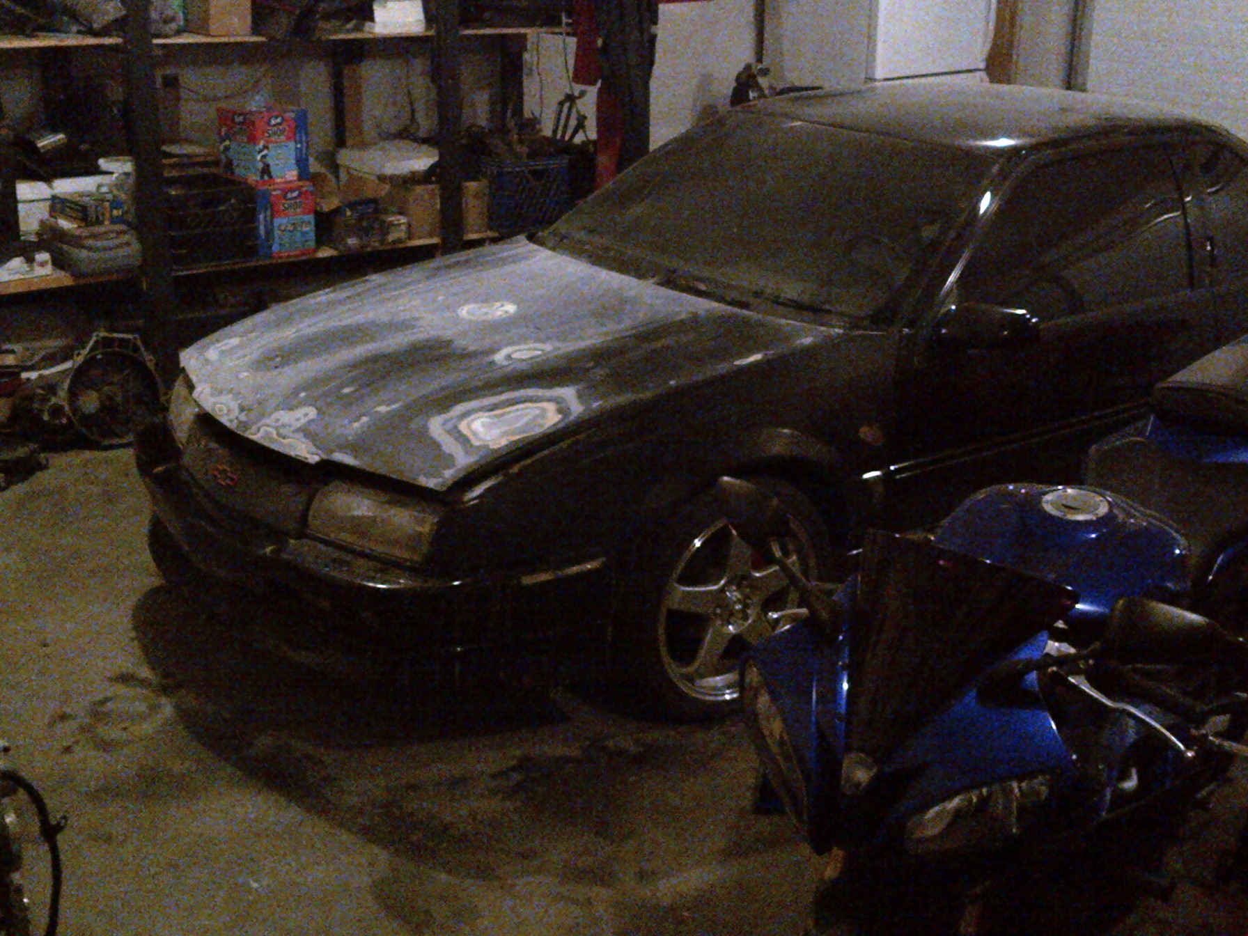 hood, front fenders sanded down... hood appears to be repaired from hail damage, instead of fixing it, they just skimmed the hood with bondo.. uggh