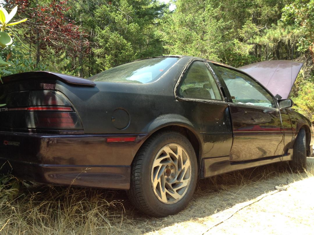 Found a BRM (Black Rose Metallic) Z-26 at a local yard, and got a bunch of parts for the Zs (both of my '95 Z-26s are BRM). Washed the old '95 Z-26, and replaced the deck-lid that was on loan from the Teal Indy (that car has a replacement deck-lid with a Fiero GT wing spoiler). Then, I started peeling the flat-black Plasti-Dip from the spare white rear bumper-cover the Z was wearing, and will replace it with the salvaged BRM cover. Lastly, I will switch-out the damaged right-side ground effects for the new one, and see if I can replace the quarter-window rubber trim without too much trouble. I wish I had gotten to the yard early enough to snag the front bumper-cover too, but I think the car has been crushed now.