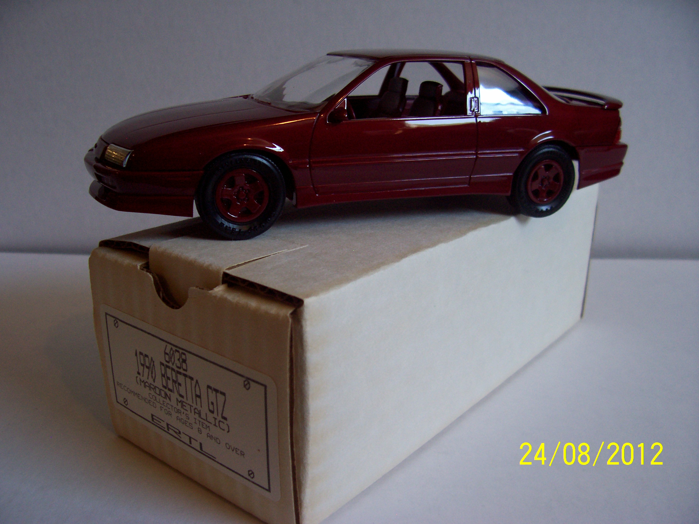 [I have 4 1990-1991 Beretta dealer promotional models to pass along to other enthusiasts. All were purchased when new by myself and represent all the variations and colors of Berettas that were offered as promotionals in 1990 and 1991. The models include 1990 Maroon Metallic, 1990 White, 1991 Bright Red, and 1991 Black. All are highly detailed with deep, clear finishes and all are in absolutely mint in the original box condition. All are $25 each plus shipping please. For further photos or information please write to me direct at fift8imperial@yahoo.com