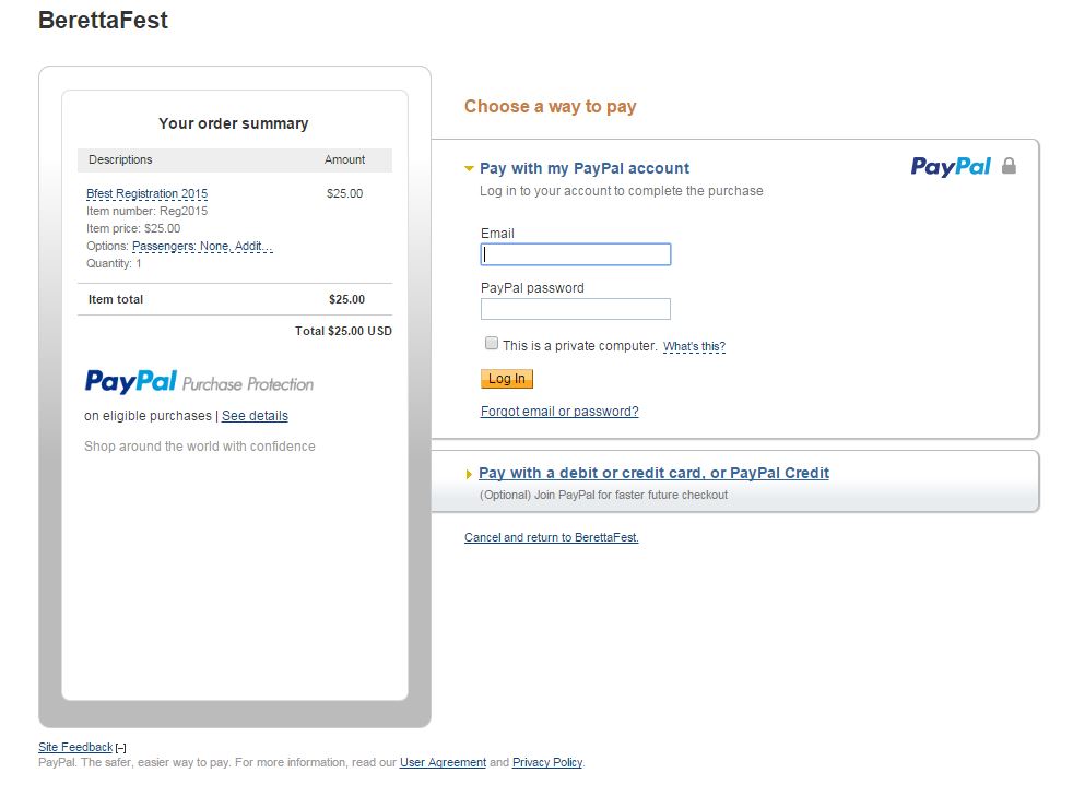 Pay with PayPal Account option after click on checkout. Just below you can click Pay with Debit/Credt Card or Paypal Credit. YOU DON'T NEED AN ACCOUNT I will close this topic with saying, if you screw up registering with all the information available on these sites I will smack you in person at the event