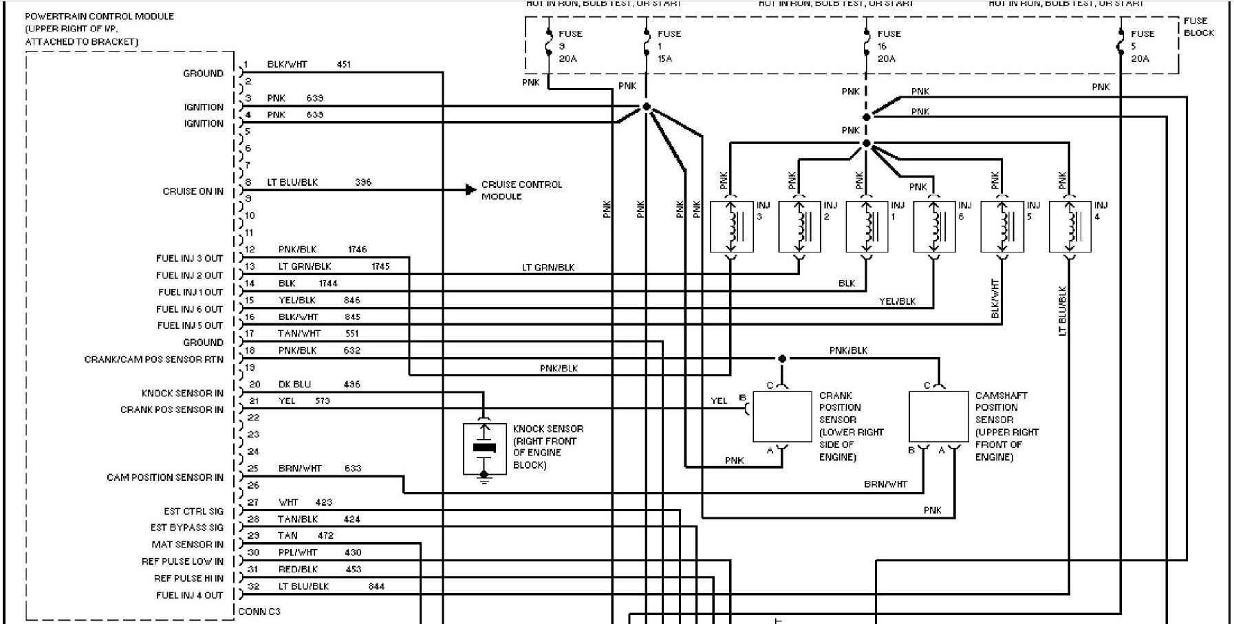 Here is a picture of the wire colors that go to the injectors... Pink is the common hot, or 12v lead, and the grounds are what goes to the ECU to be triggered, the six colors are listed on here.