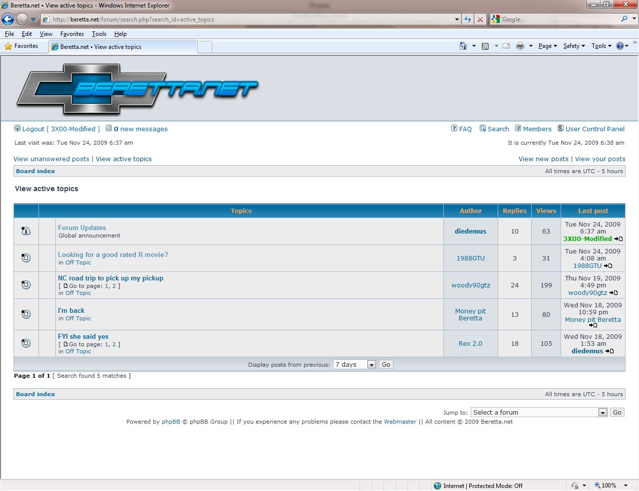 Here is an example, I logged back in, No new topics since I already checked them, But I JUST replied to the header topic, yet when I click on active topics I only get this list... The same list from when this went back to phpBB